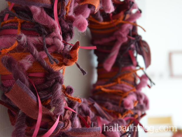 Die Technik ist denkbar simpel, heraus kommt aber ein echtes Schmuckstück für Wand oder Tür. Schön strubbelig und herbstlich-wild! Besonders lebendig wird er durch das Spiel mit unterschiedlichen Texturen.