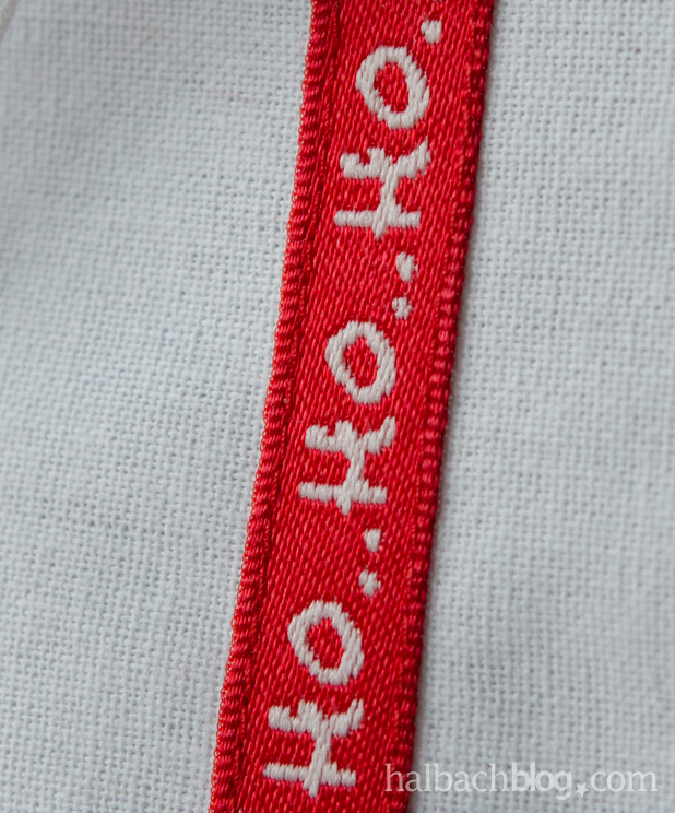 - verschiedene Jacquard- und Webbänder mit weihnachtlichen Motiven und Schriftzügen, unifarbene Bänder dazugemixt geben optische Ruhe