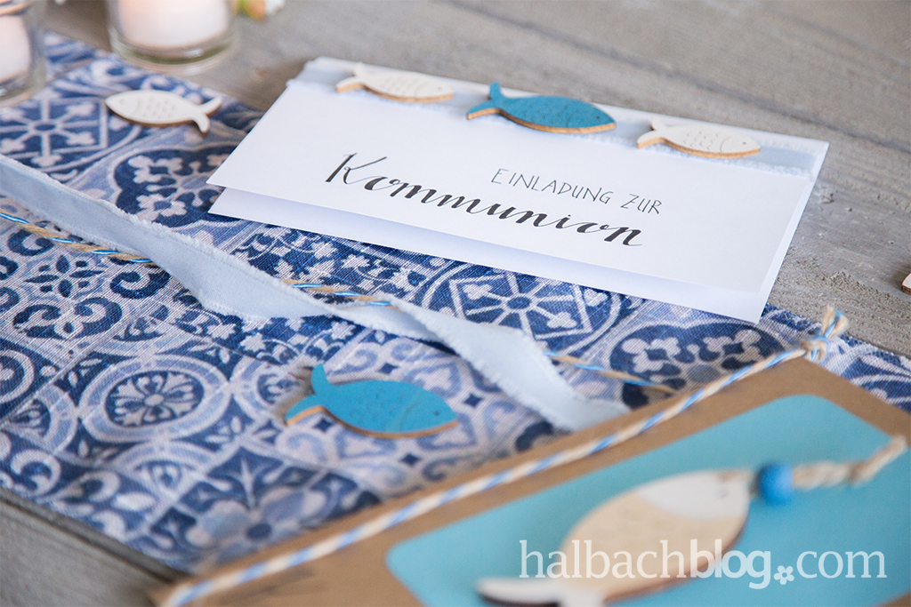 -> alle Holzfische als Hänger, Streu oder Klämmerchen und die passenden Bänder/Kordeln für die Einladungskarten zu Kommunion & Konfirmation bekommt ihr zur Zeit auf Halbach24!