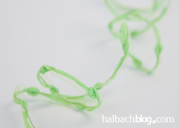 Die Experten von Halbach wären aber nicht sie selbst, wenn sie sich mit dem, was die Maschinen standardmäßig können, zufriedengeben würden. So wurde im Laufe der Jahre einiges ausprobiert. Etliche Bandkreationen sind entstanden, die es so nur und exklusiv bei Halbach gibt. Zum Beispiel ein Band, welches in seinem groben Maschenbild aussieht wie gestrickt. Es ist aber gehäkelt – am ehesten trifft wohl die Beschreibung des „Knookens“ {Stricken mit der Häkelnadel} das, was die Kreativen sich da ausgedacht haben.