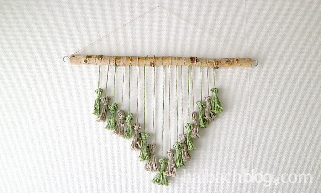 Das schöne Wetter hat uns zu einem sommerlichen Quasten-Wandbehang im natural look inspiriert. Natürliche Farben haben es uns angetan, daher haben wir uns für grün und naturfarben entschieden. Der Quasten-Ast wird aber sicher auch einfarbig oder mit anderen Farbkombis zum Hingucker.