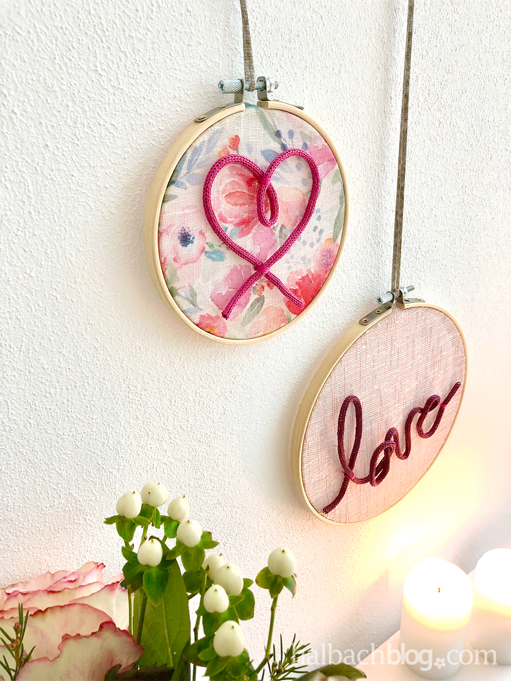 Zeit für DIY-Ideen mit Herz. Die Stickrahmen mit herziger Applikation aus dem Papierstrickschlauch machen sich nicht nur zu Valentinstag gut an der Wand.