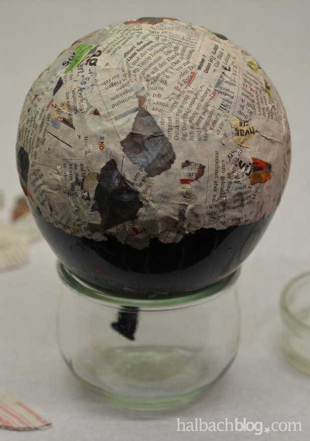 - nach dem Trocknen den Luftballon aufstechen und die Reste vom Pappmaché lösen